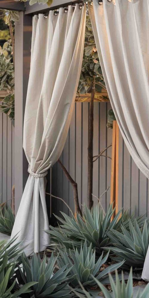 11. Outdoor Curtain Fence for a Soft, Elegant Look
