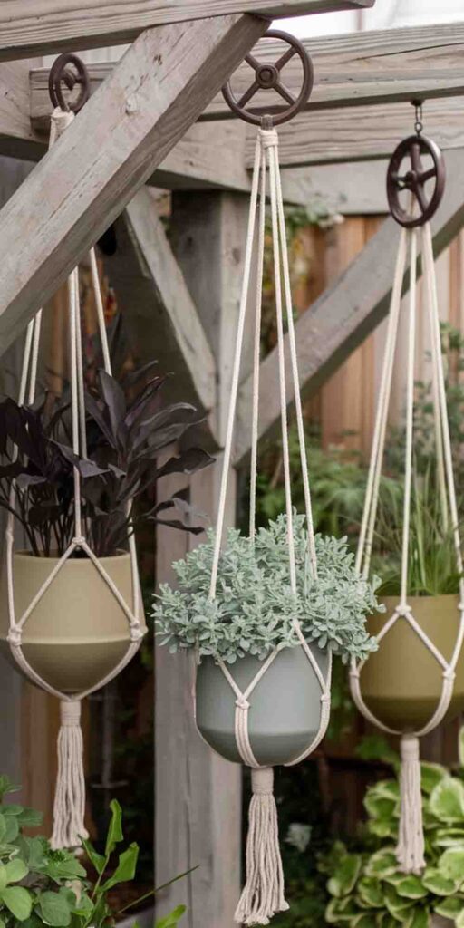 16. Rope and Pulley Hanging Planters