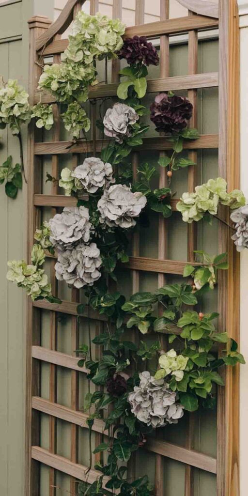 19. Wooden Fence Trellis with Climbing Flowers
