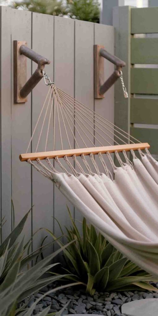 21. Fence-Mounted Hammock Hooks for Ultimate Relaxation