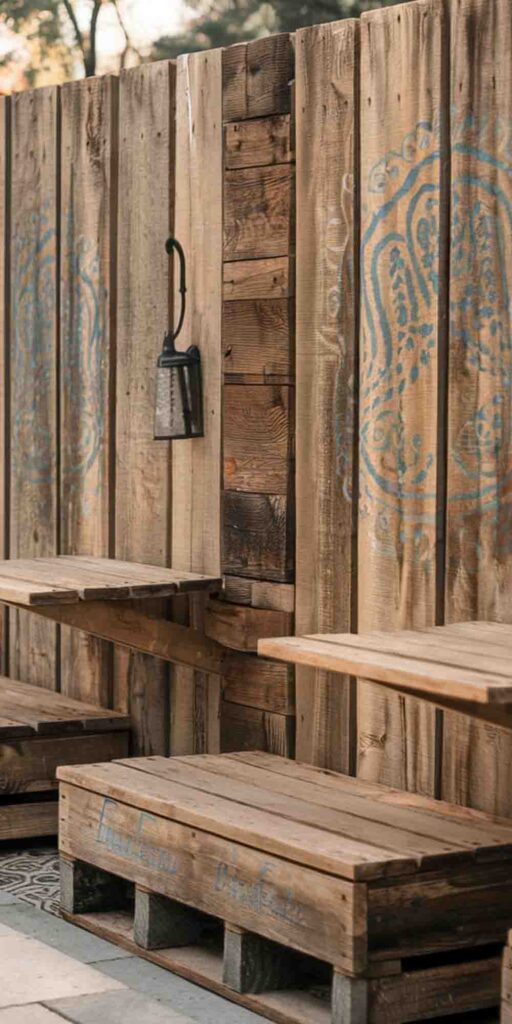8. Rustic Pallet Fence Art with a Functional Twist