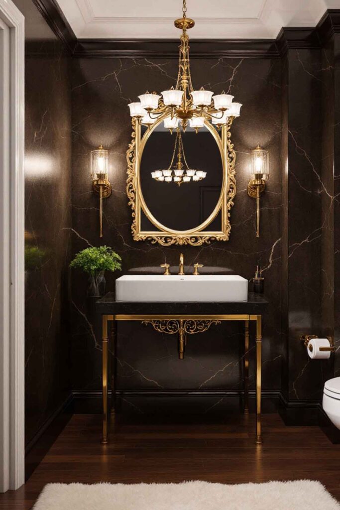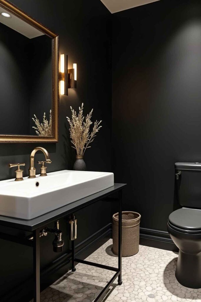For a fearless and glamorous powder room, true black offers undeniable sophistication.