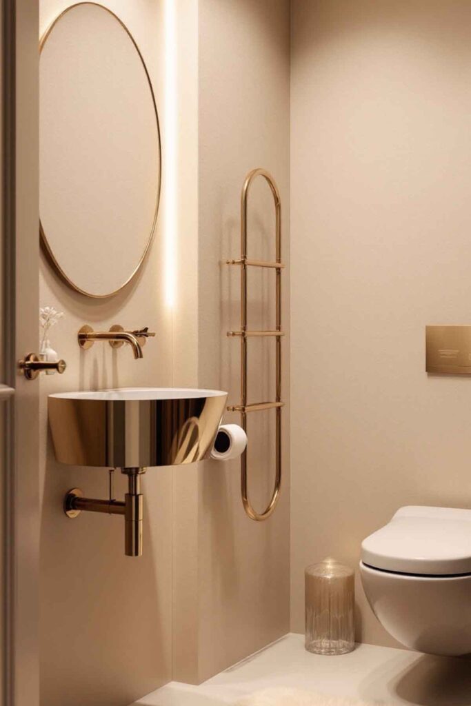 Muted gold adds a refined touch of luxury without overpowering the space.