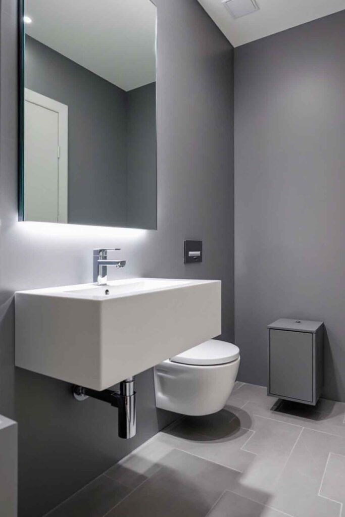 This shade pairs seamlessly with sleek black fixtures, geometric tile patterns, and minimalistic accessories. Matte finishes add a layer of depth, giving the powder room a polished and contemporary appeal.